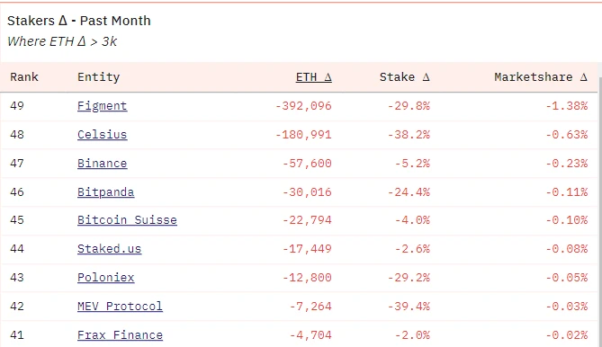 ETH 总质押情况整体呈大幅上升趋势,并且正好处于 ATH 水平。Celsius/Figment 出现有史以来最大一次解押,约 57.3 万枚 ETH。