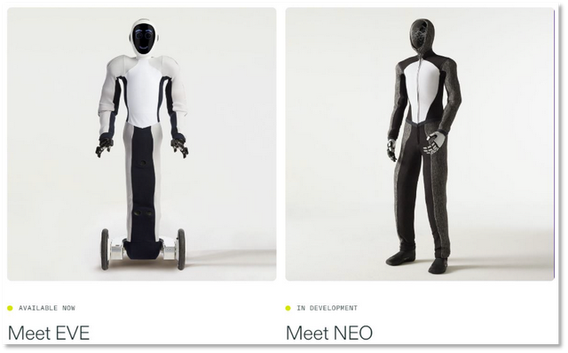 挪威的人形机器人初创企业 1X Technologies今年直接带来了EVE 和 NEO 两款产品。EVE已在美国和欧洲部分地区投入商业化应用,能巡逻,能搬运,能导航,能放哨,相当于机器人保安;而NEO目前仍处于研发阶段,据称,它会像人类一样柔软、轻巧,可以通过面部表情与人类沟通。
