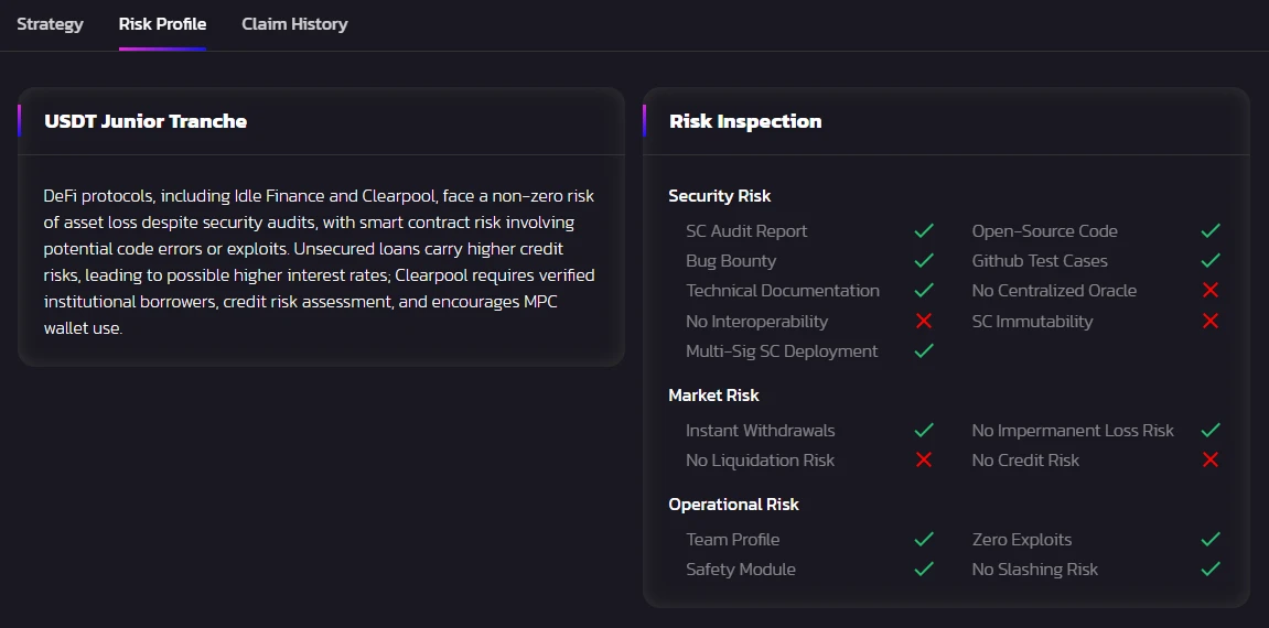 与其他收益平台相比,Amulet V2的独特之处在于其为每个收益策略均提供了全面、透明且完全客观的风险分析,主要涵盖安全风险、市场风险以及运营风险检查,旨在为用户在投资活动中赋予更强的决策能力,合理均衡收益与风险。
