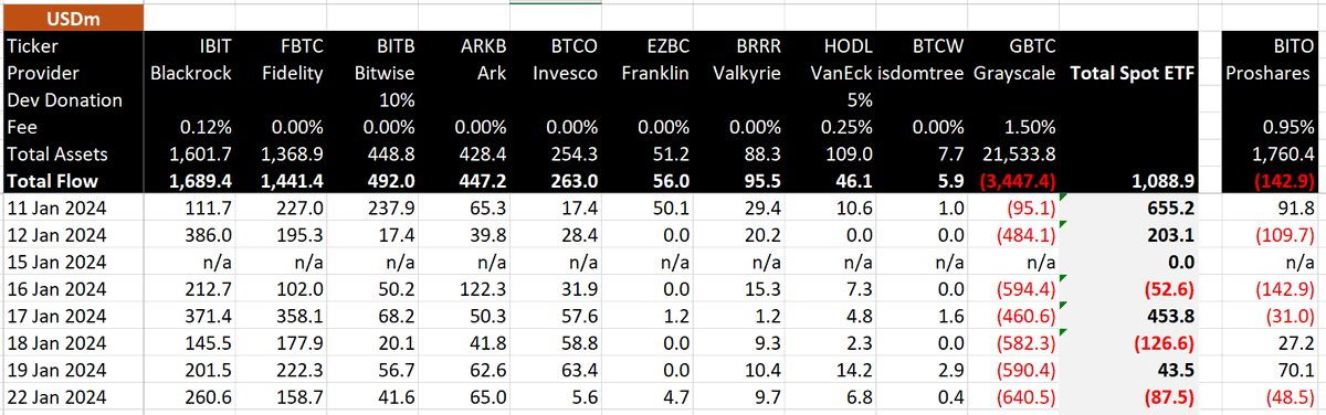 10支比特币现货ETF第7个交易日净流出8750万美元,GBTC流出资金达6.4亿美元