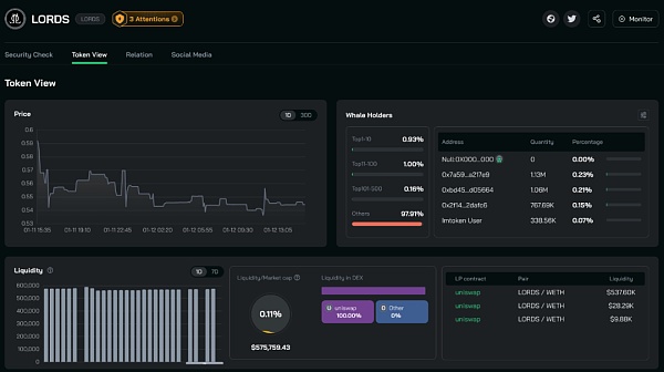 目前EagleEye已收录LORDS代币,用户可在EagleEye上监控LORDS代币的链上异动:
