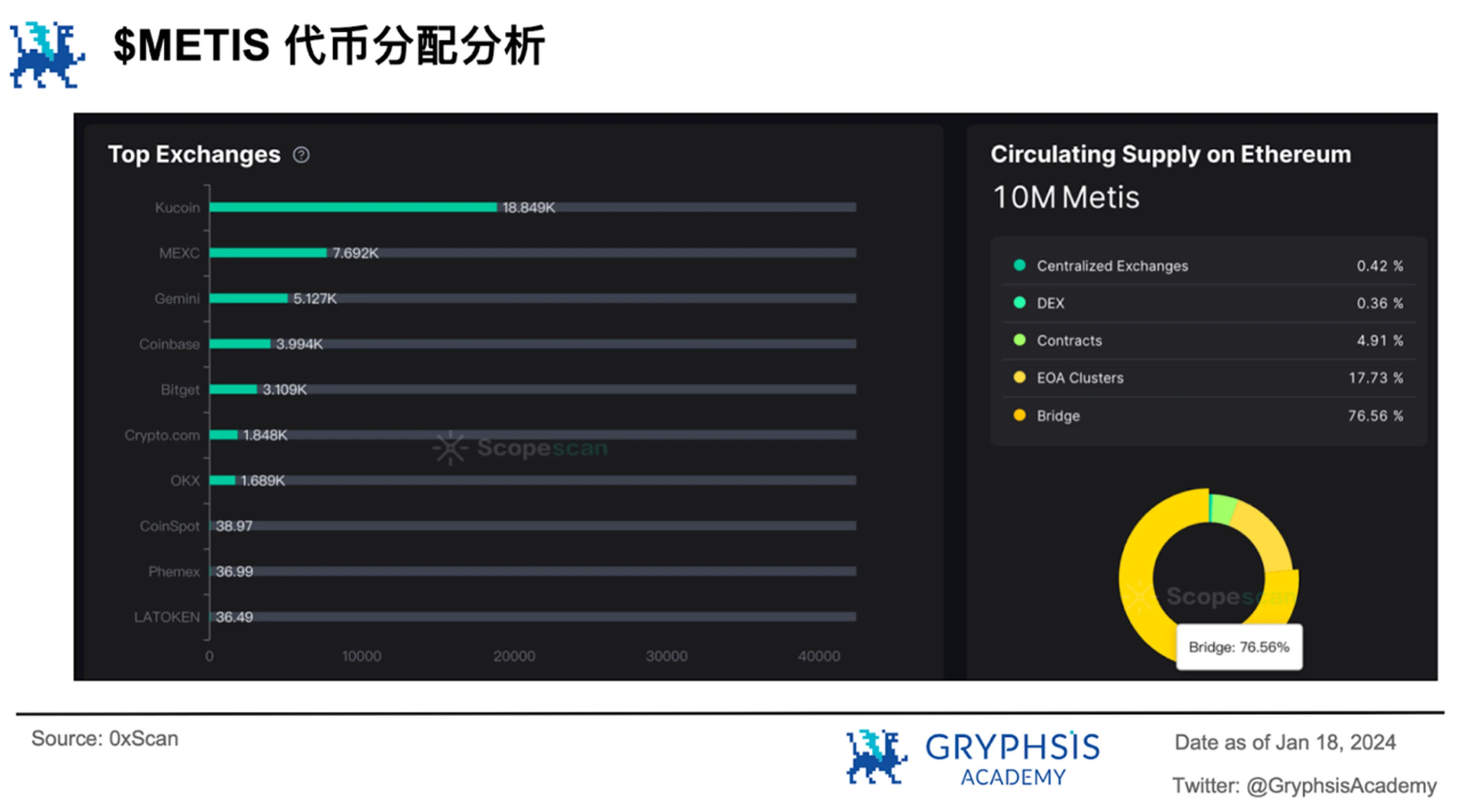 此外,在支持 $METIS 的 CEX 中,以 Kucoin, MEXC, Gemini 流动性最佳。