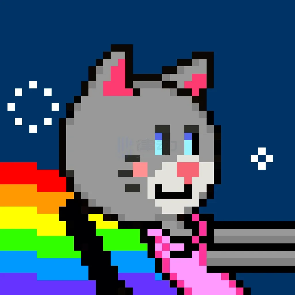 比如「彩虹猫」Nyan Cat 的创作者 Chris Torres(@PRguitarman),他在以太铭文的官方 Discord 频道中聊到了 mfpurrs。@VirtualAlaska_ 随即询问他是否也会为 mfpurrs 创作一些艺术作品,于是就有了以下这个 Chris Torres 专属的 1/1 mfpurrs。