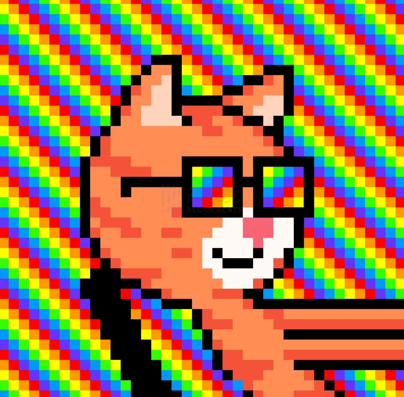 不仅如此,Chris Torres 还为 mfpurrs 定制了下图的「彩虹混乱」眼镜特征,以及包括彩虹背景在内的多个背景特征。