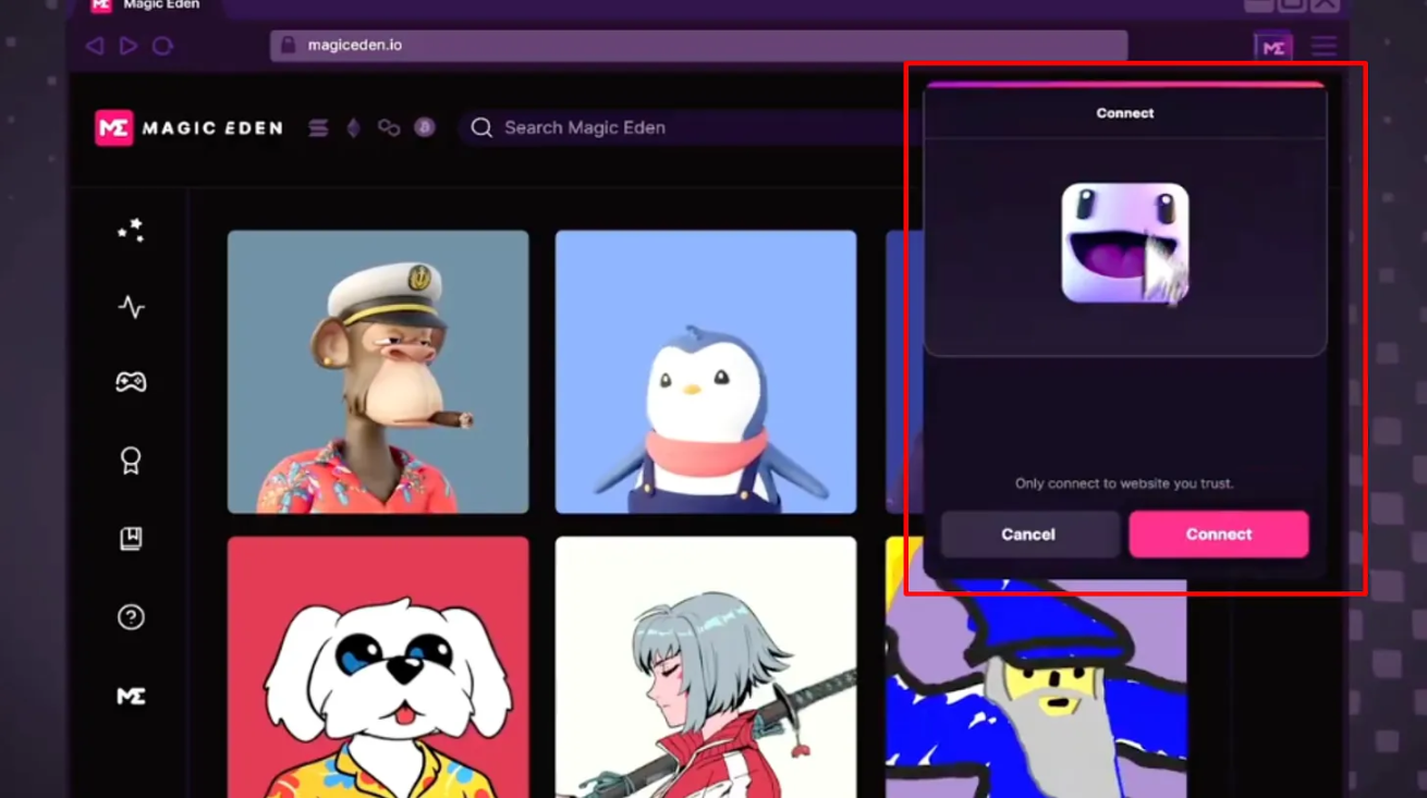 与 Magic Eden 的 NFT 平台直接集成,为你在 Magic Eden 上提供更好的 NFT 管理、体验和奖励