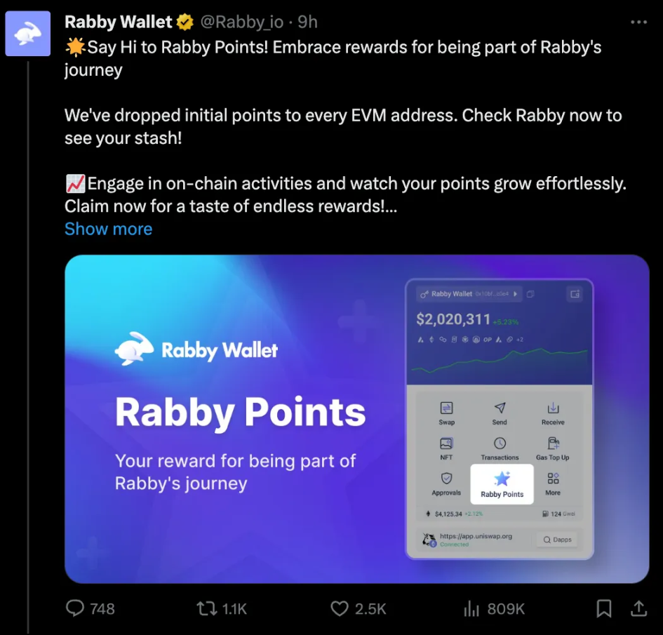 我自己甚至也难以跟上所有新推出的计划。例如,Rabby(一个钱包提供商)正在推出一个积分计划,与上个月 Rainbow 推出的积分计划竞争,旨在从 Metamask(目前没有空投或积分系统)这个市场巨头那里夺取市场份额。