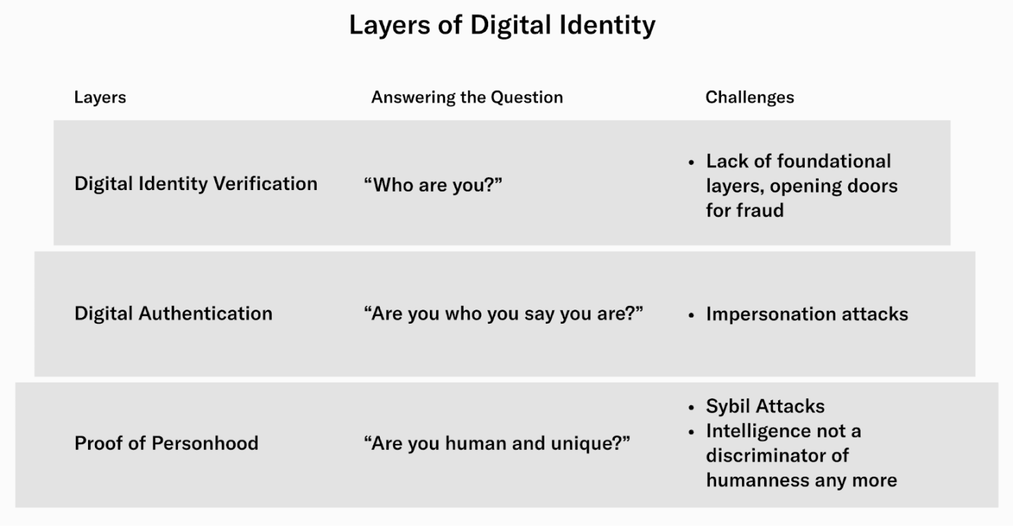 人类身份证明(Proof of Personhood,PoP)是确认一个人的人性和独特性的机制,被视为构建数字身份的基石。(来源:Worldcoin)
