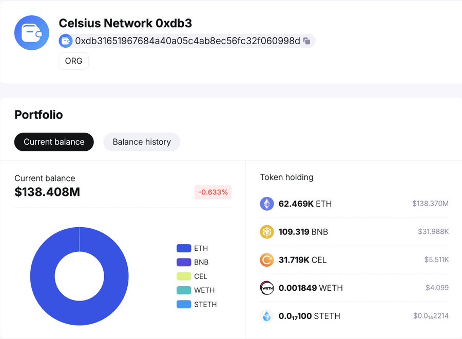 Celsius累计向多个交易所存入近46万枚ETH,约合10.2亿美元