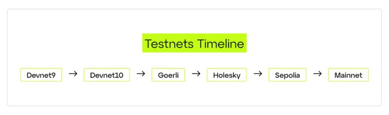 按照前期以太坊 ACDE 会议提供的路线,坎昆升级测试将按 Goerli、Holesky、Sepolia 等测试网顺序进行。