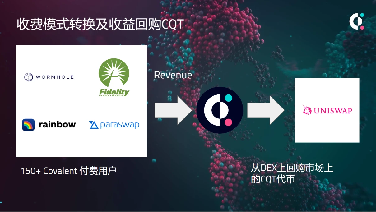 同时,我还想补充一个非常有趣且令人兴奋的点,如幻灯片所示。首先,我们有来自超过 150 家企业的付费客户,包括 Wormhole、Fidelity、Rainbow 等。他们购买我们的服务为我们带来了收入。同时,我们还在 Uniswap 上进行代币的购买和回购,这两者都为我们带来了收益和利润。
