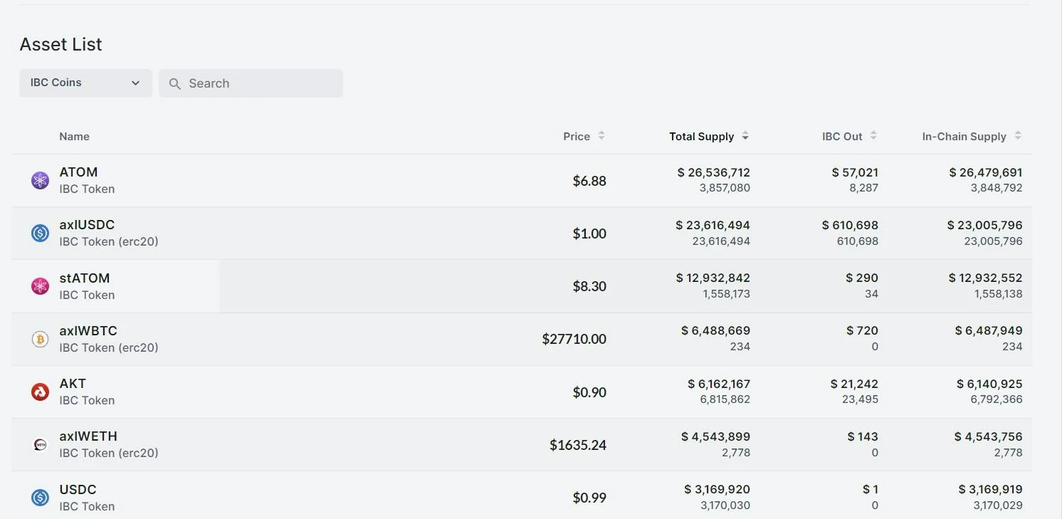 而跨链至 Osmosis 上的只有约 320 万美元,其余大部分仍为 Axelar 跨链来的 axlUSDC,同时来自 Kava 链的原生 USDT 稳定币只有约 60 万美元。
