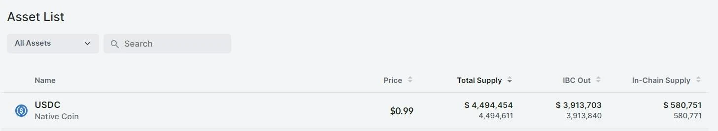 Noble 链上目前发行的 USDC 总量为 450 万美元左右: