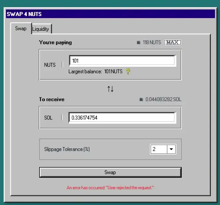 由于 Deez Nuts 可拆分或合并,只有用户持有中最大份额的 Deez Nuts 可进行交易,因此如果要卖出 Deez Nuts,可以提前将 Deez Nuts 进行合并。Deez Nuts 的拆分和合并过程在《被 Solana 创始人推特置顶,新代币标准 Tiny SPL 是什么?》已有介绍。