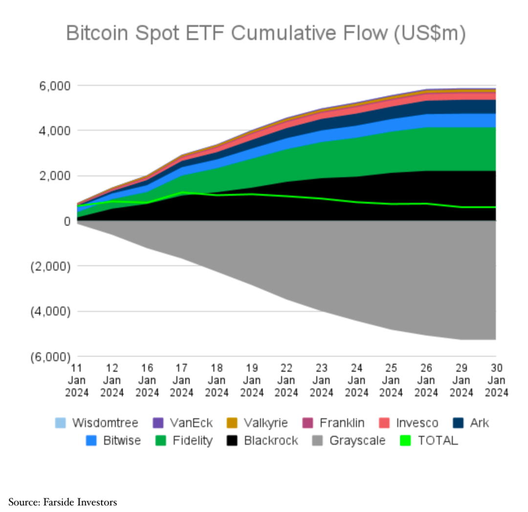 在太平洋对岸的美国,比特币现货 ETF 被批准上市后的发展情况对香港来说具有很好的借鉴意义。然而,由于灰度持续抛售比特币,使得美国的比特币现货 ETF 在上市 19 天后并未给市场带来惊艳表现。此时,香港金融公司进军比特币现货 ETF,是否还存在意义?
