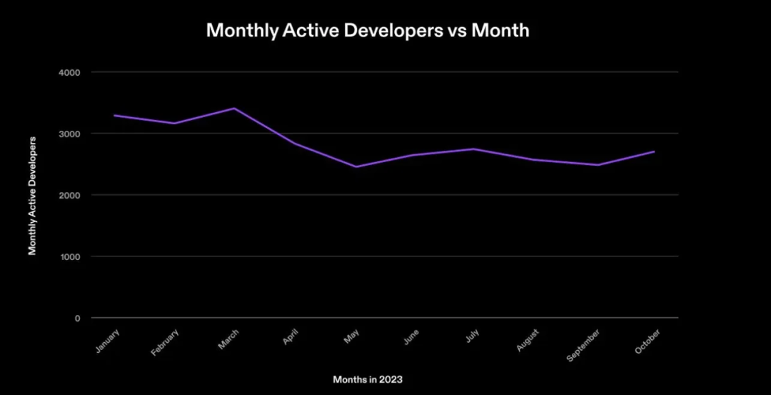 Solana 在 2023 年每月活跃的开发人员