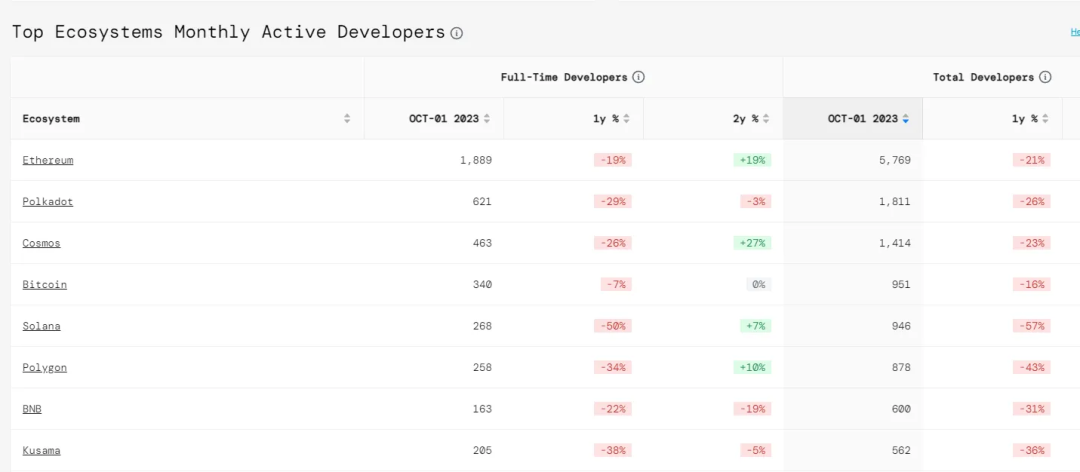 如果我们将这个数字与 Electric Capital 的开发者报告相比较,该报告称 2023 年 10 月,区块链生态系统中有超过 19000 名开发人员,那么 Solana 上的开发人员占整个生态系统的约 15%。