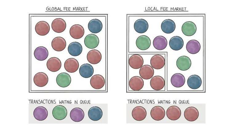 也就是说,使用任何特定合约的交易不能占用区块的 25% 以上,即 1200 万 CU。超过此限制的所有交易必须等待下一个区块。 因此,如果一个独立应用程序的使用量急剧增加,整个网络不会开始支付更多的手续费。只有与该应用程序交互的交易才会看到手续费的增加。这就是本地化手续费市场的样子。