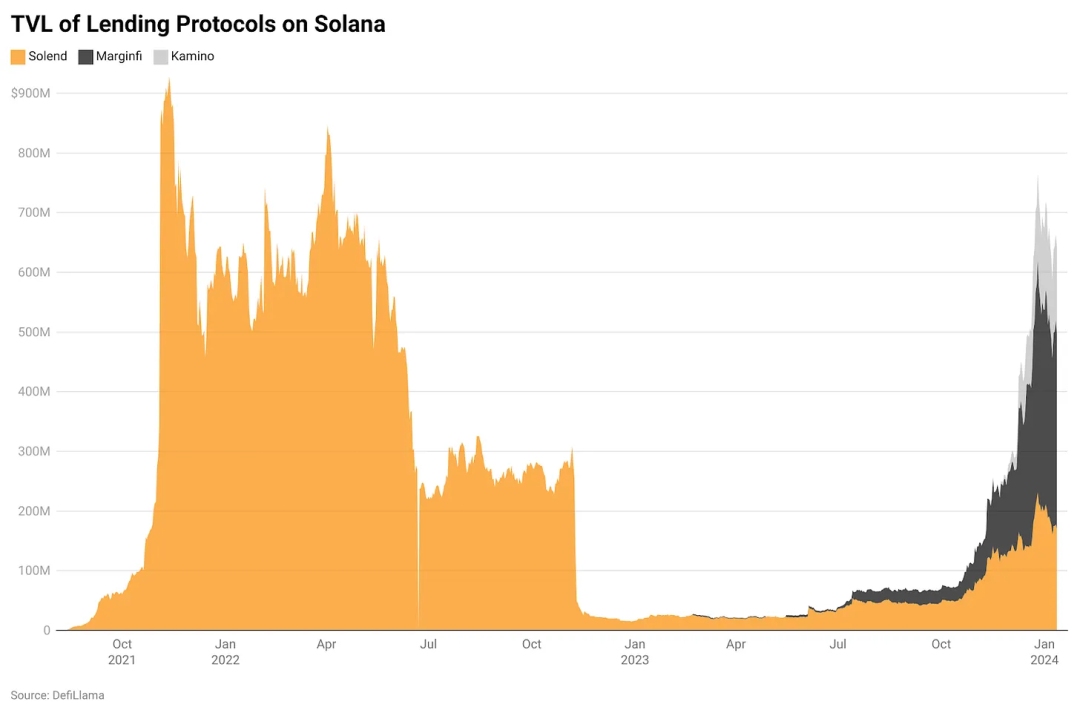 Solana 上借代协议的 TVL 总量
