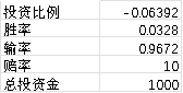 当然,凯利公式仅是一个理性投资的建议投资比例。如果按照10倍的赔率计算,如果你能够保持10%以上的投资胜率,才值得考虑这个游戏是否应该参与。