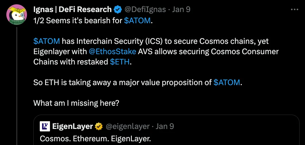 再加上 Dymension、ATOM 分叉、以及现在 Ethos 的推出,ATOM 似乎承受了很大的压力。