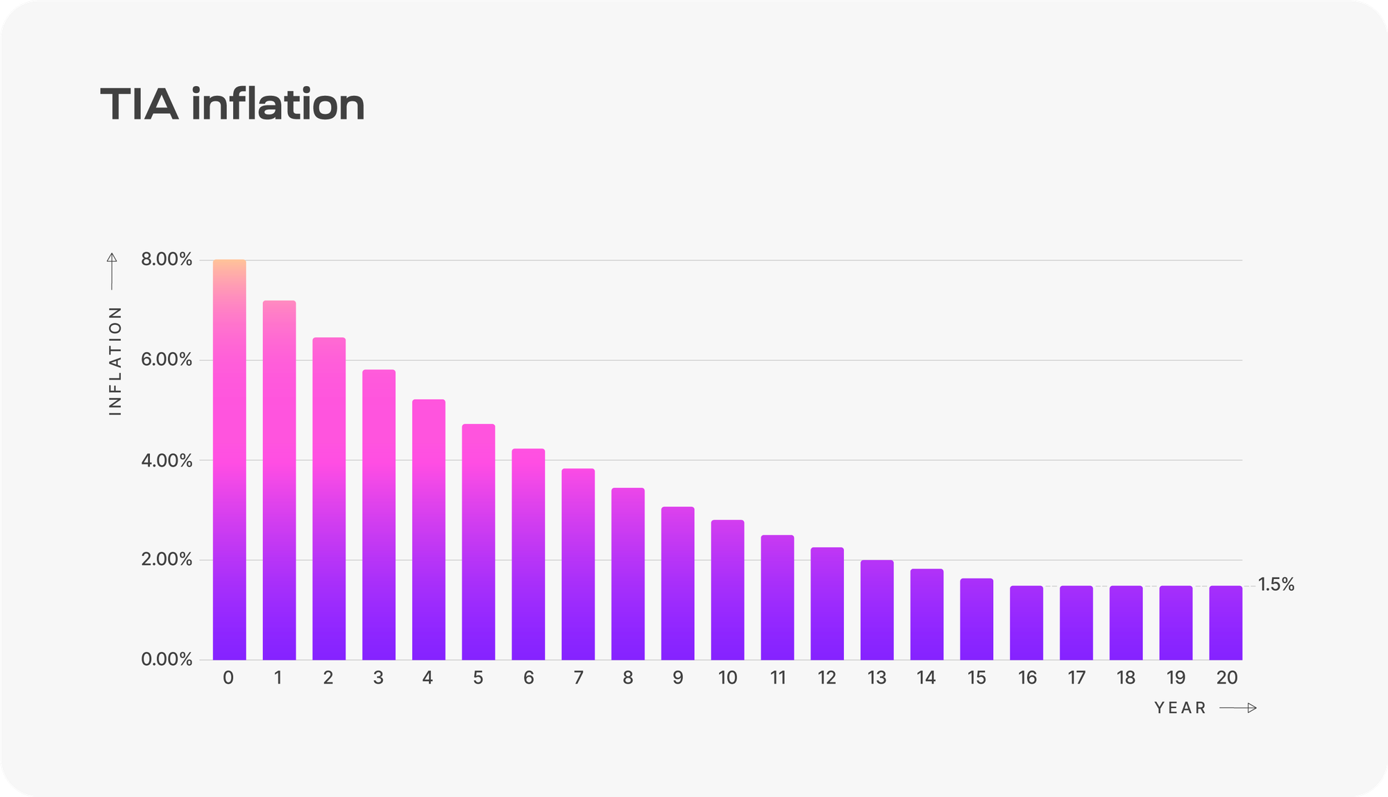 去中心化治理: TIA 持有者参与治理,投票决定网络参数和管理社区池,社区池接收 2% 的区块奖励。