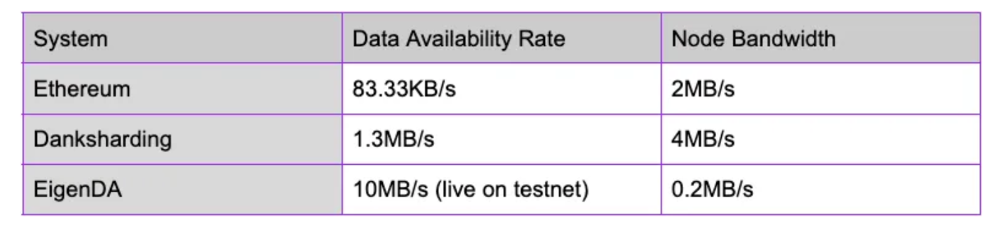 为了更好地区别 EigenDA 与以太坊 DA 以及其他 DA 解决方案的区别与优劣势,我们将二者分开对比。