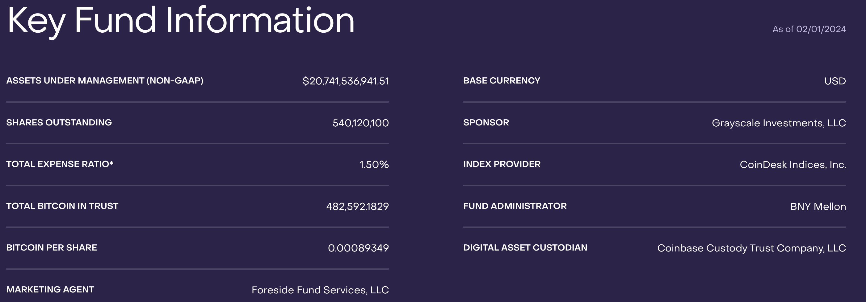 据灰度 GBTC 官网 资讯 显示,截至昨(1)日,GBTC 的资产管理规模(非公认会计原则)约为 207.41 亿美元,持有的比特币数量约为 48.26 万枚,较前日减少约 4,433 枚比特币。
