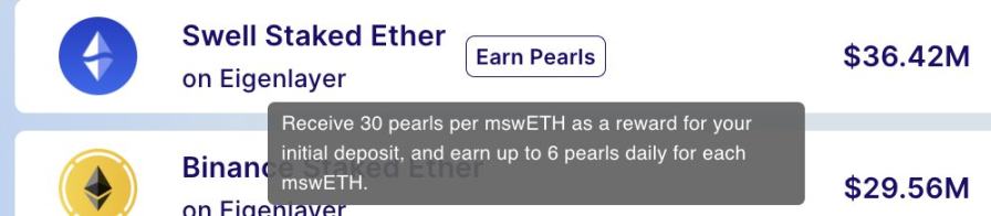 Eigenpie points 对应总量 10% 空投 + 24% IDO 300 万美元 FDV - Swell pearls 对应总量 7% 空投 ;