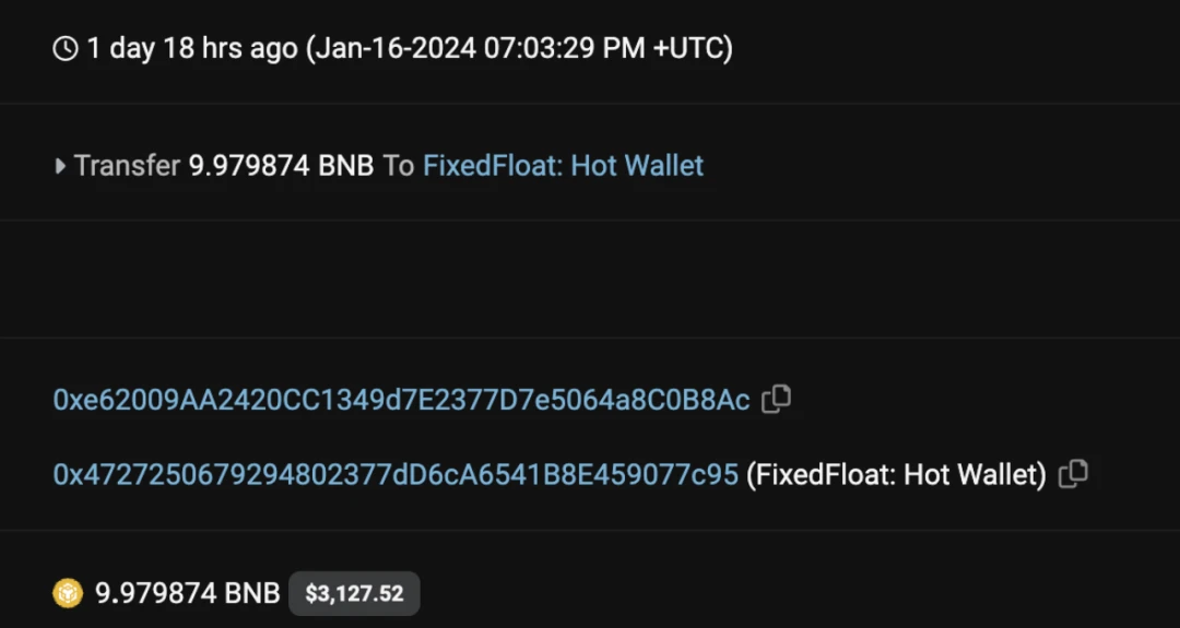 1.北京时间 1 月 16 日 15: 03 ,攻击者钱包转入攻击所用资金,我们的时间分析表明这笔资金来自0x e 620 ,与从 Tornado Cash 提取的 10 BNB 有关。