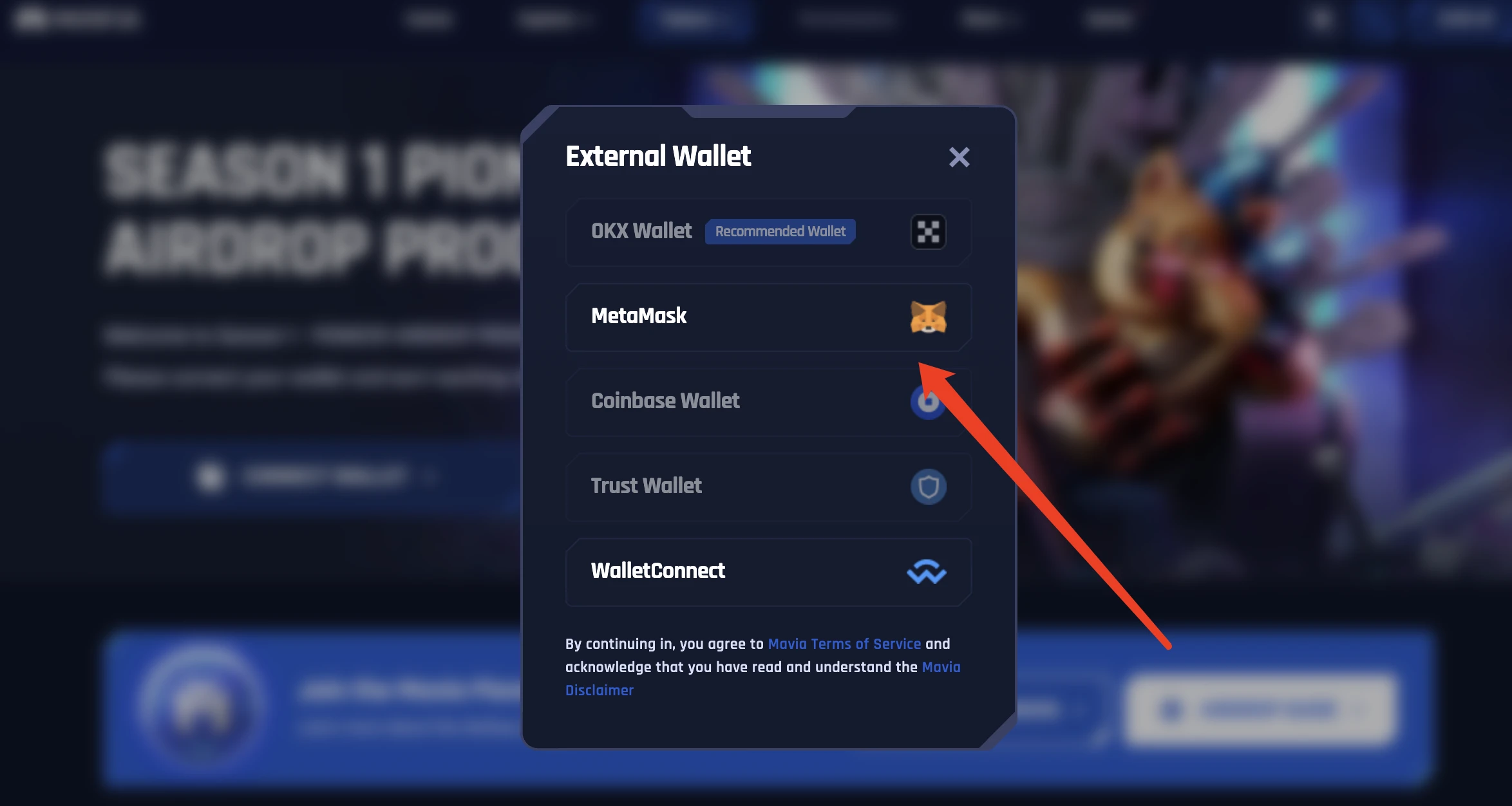 点击“CONNECT WALLET”后,连接钱包(以 MetaMask 为例)。