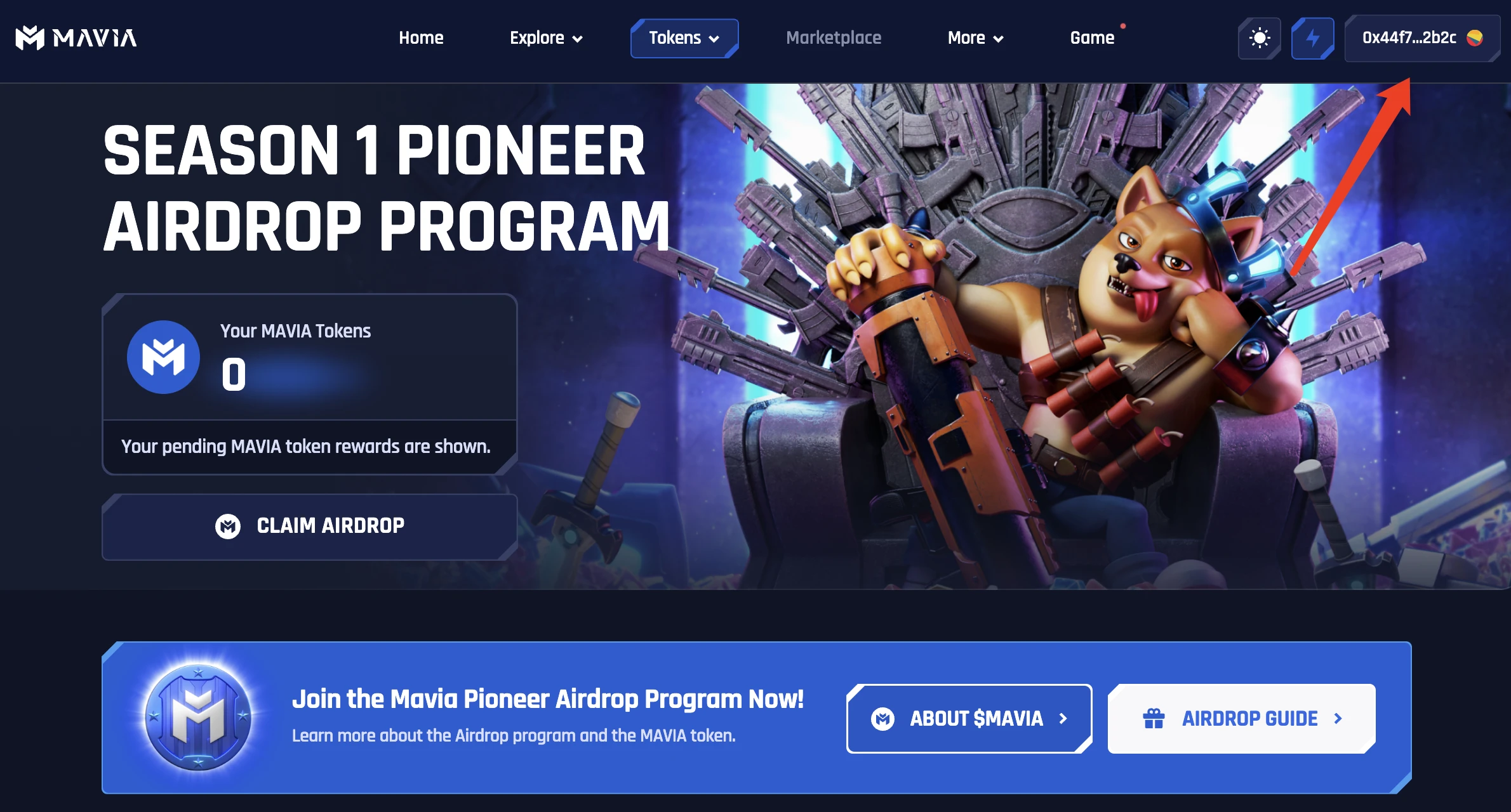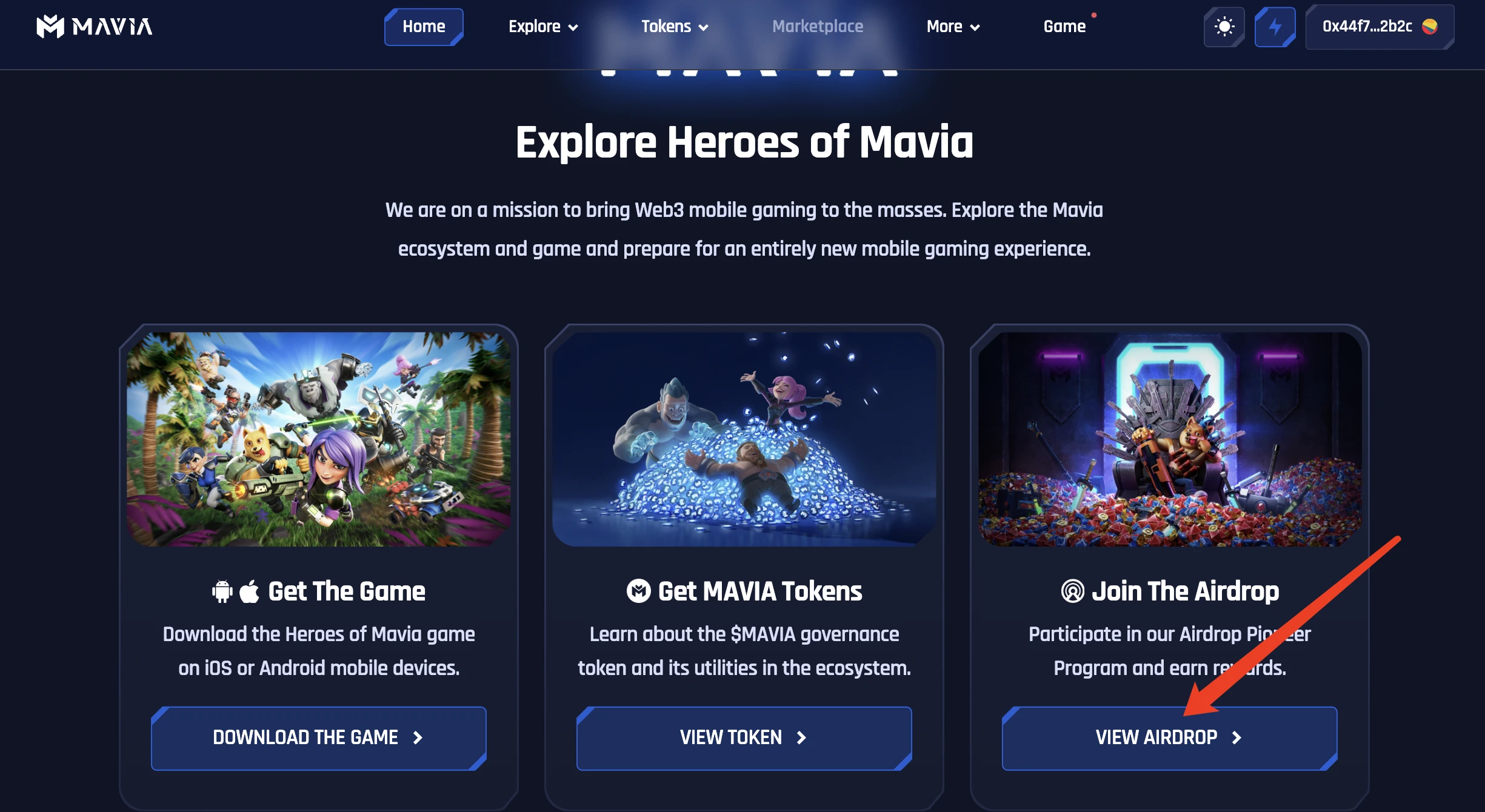 STEP 4. 转移到电脑端,登陆网站 http://Mavia.com 后,翻动页面点击“VIEW AIRDROP”。