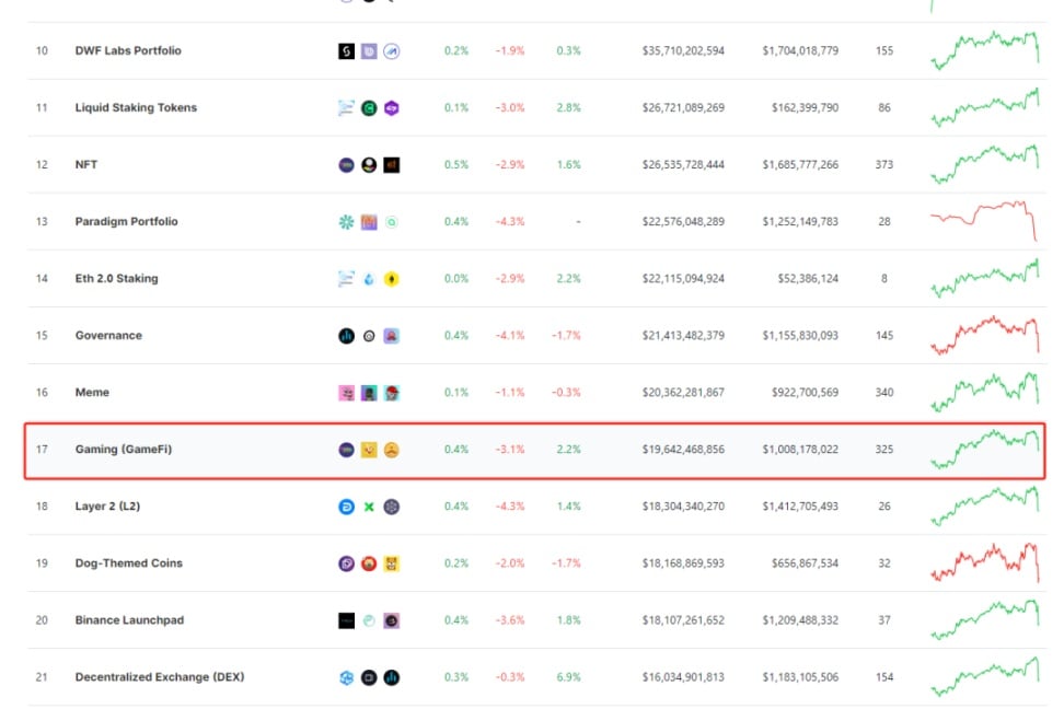 毕竟从传统的 Web2 市场来看,游戏是一个非常有潜力的市场,几乎成了很多人生活的一部分。而且传统的大多数游戏使用者对 GameFi(Gaming)领域还没有太多的认知。从 TVL 的角度来看的话,截止撰写本文(2024.2.1)时,下图中 GameFi 板块的 TVL 也仅为 196 亿美元。