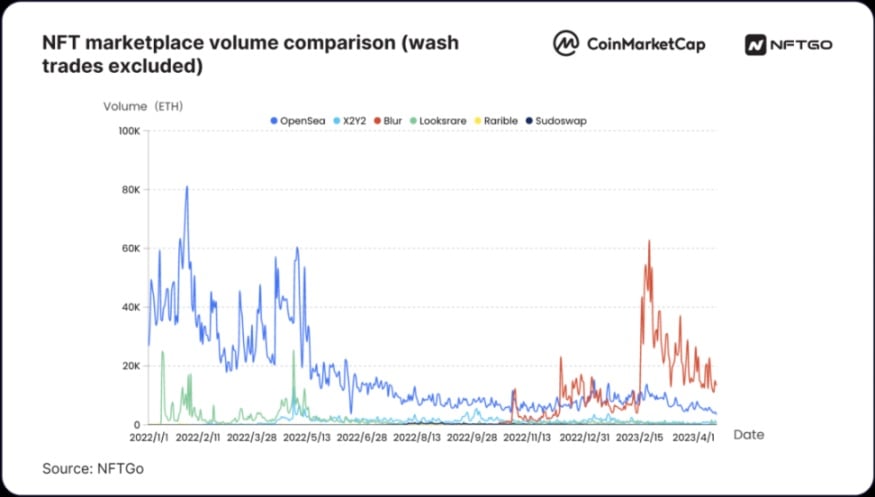 而 NFT 市场的格局也发生了钜变,Blur 从 2023 年初的与 Opensea 竞争激烈,到年底 Blur 几乎垄断了市场份额,而曾经独领风骚的 Opensea 在 2023 年 12 月份的周交易量仅占市场的 20%。侭管 Opensea 做出了产品和社群回馈,试图抵禦 Blur 的冲击,但效果甚微。随著 Blur 的崛起,零版税的争论也逐渐消失,关于「创作者是否应该获得版税」的讨论已经渐行渐远。