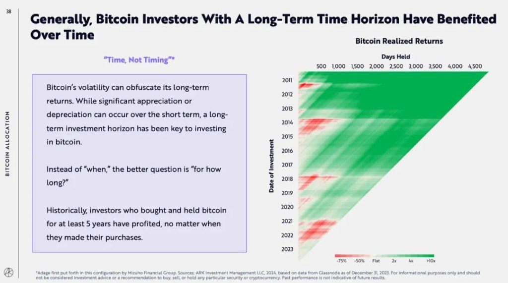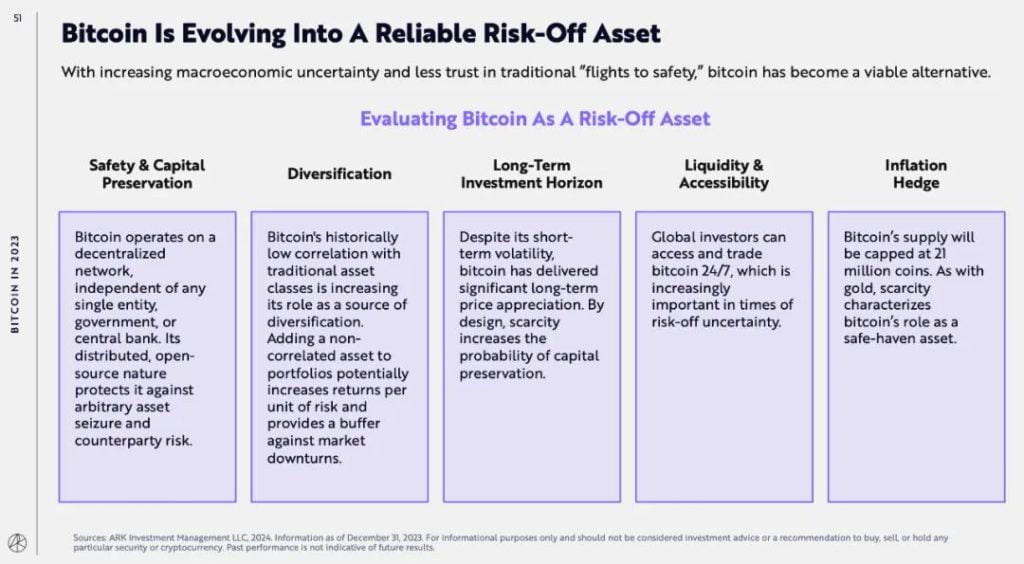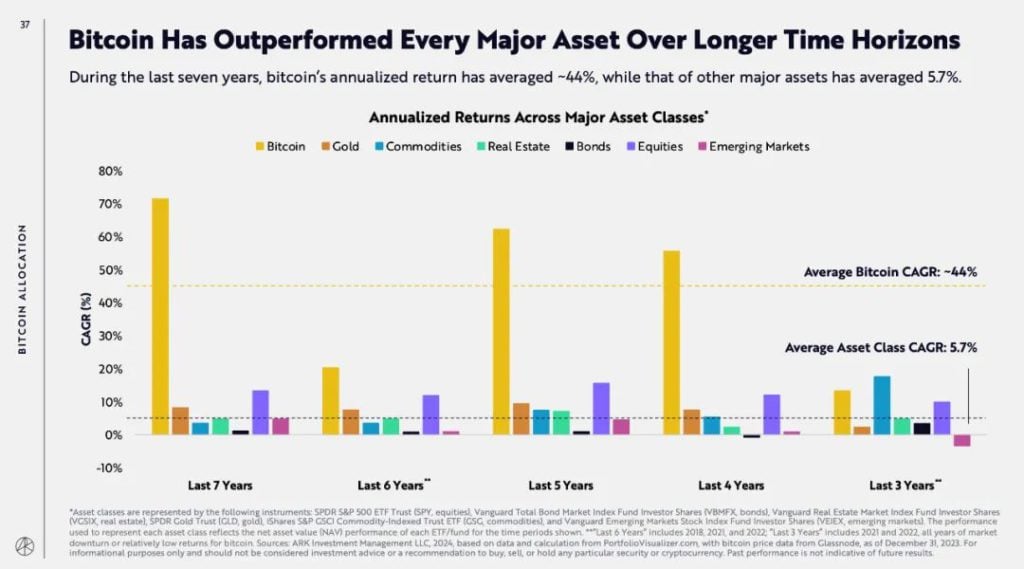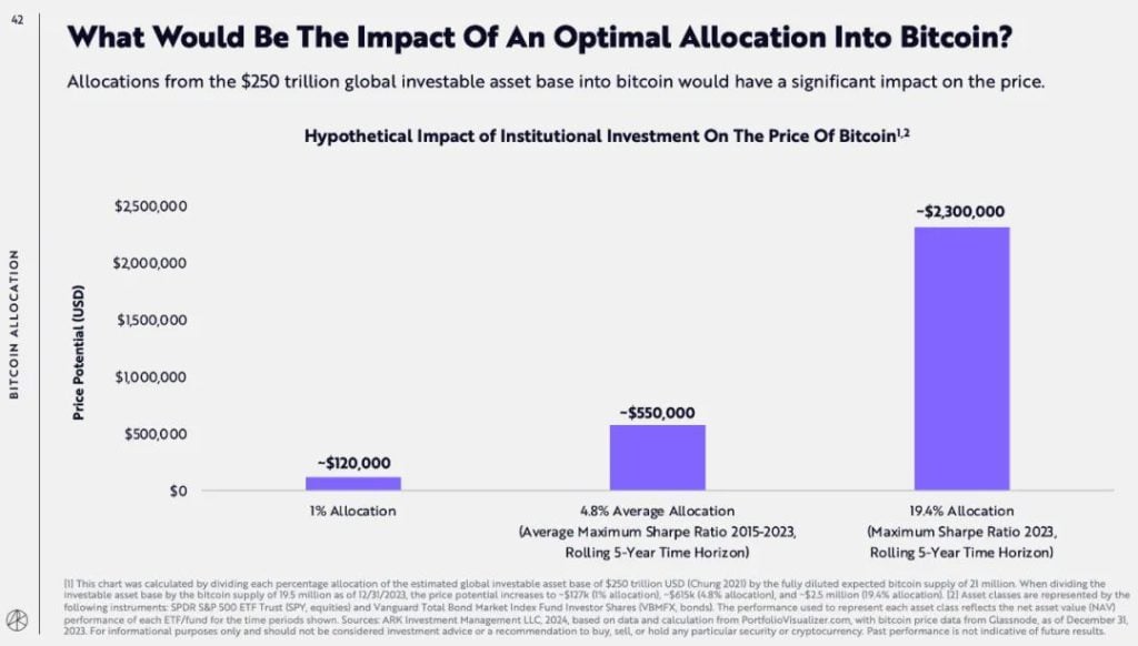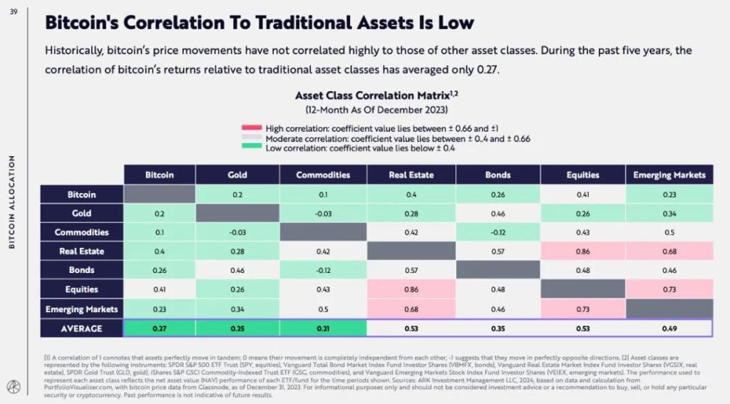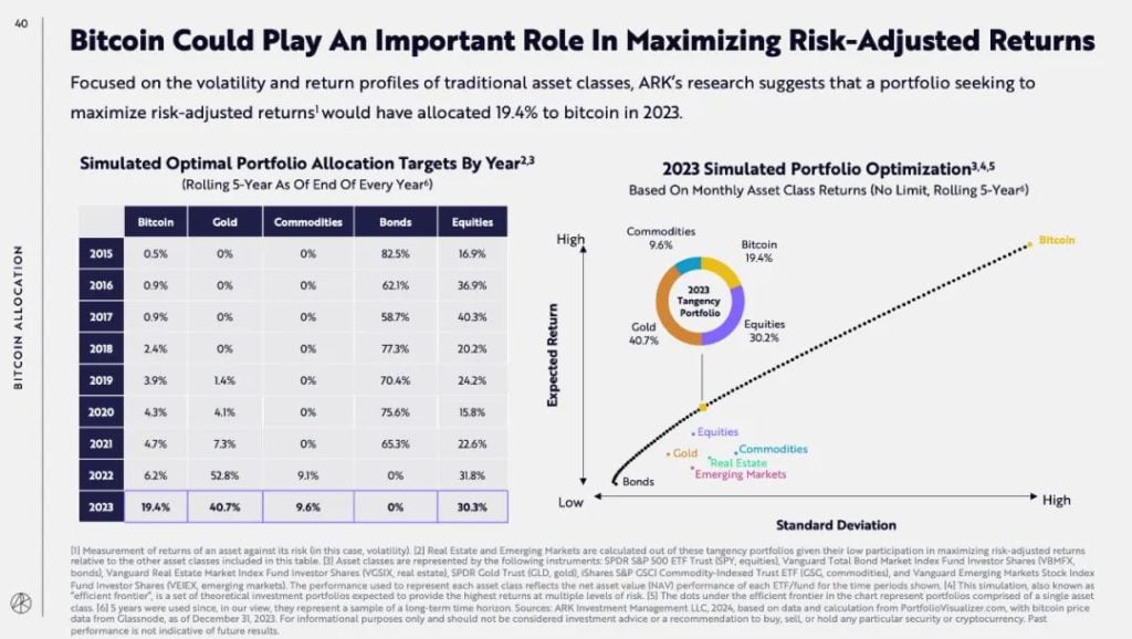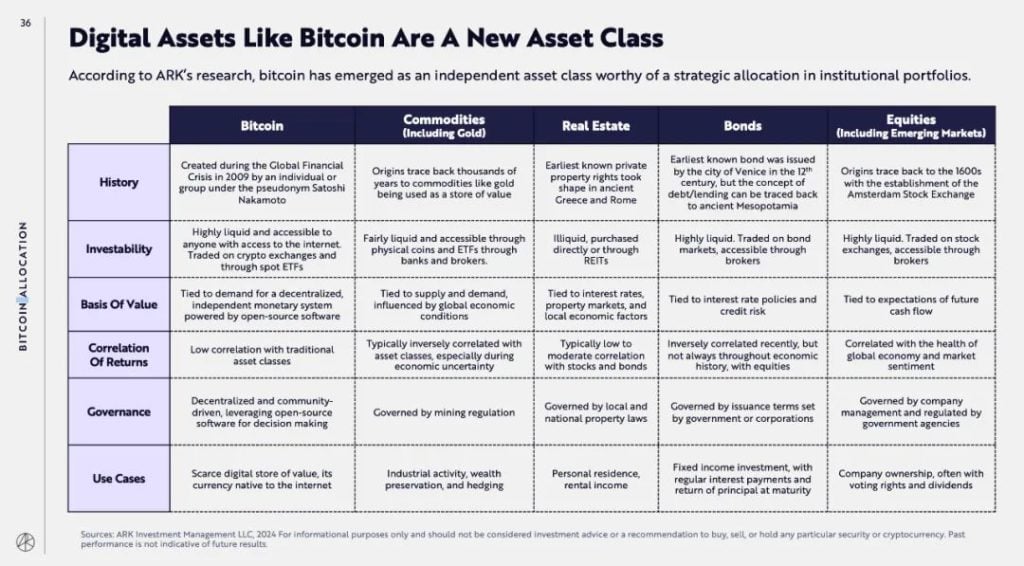 根据 ARK 的研究,比特币已经成为一种独立的资产类别,值得在机构投资组合中进行𢧐略配置。