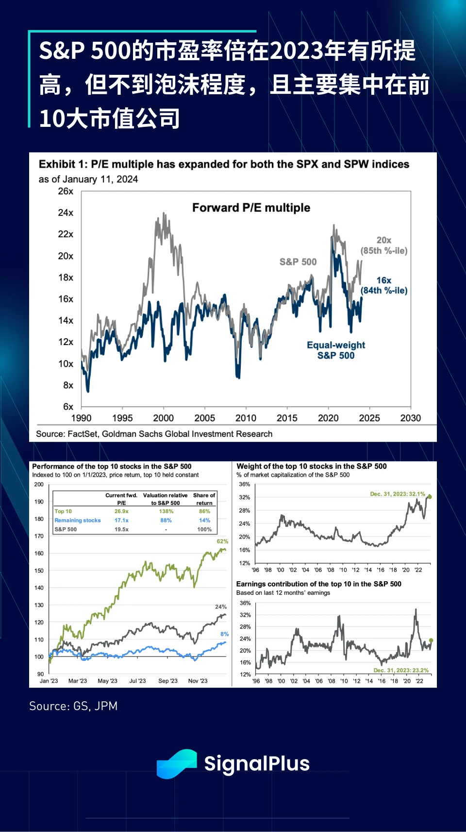 虽然 SPX 的市盈率倍数有所提高,但还没有达到极端的水平,且主要集中在大型科技股(7 大科技巨头),此外,估值也从来没有达到“泡沫”的程度,且 2023 年的年内回撤仅为 10% ,与过去 40 年的平均水平相比,去年算是一个相对温和的年份。