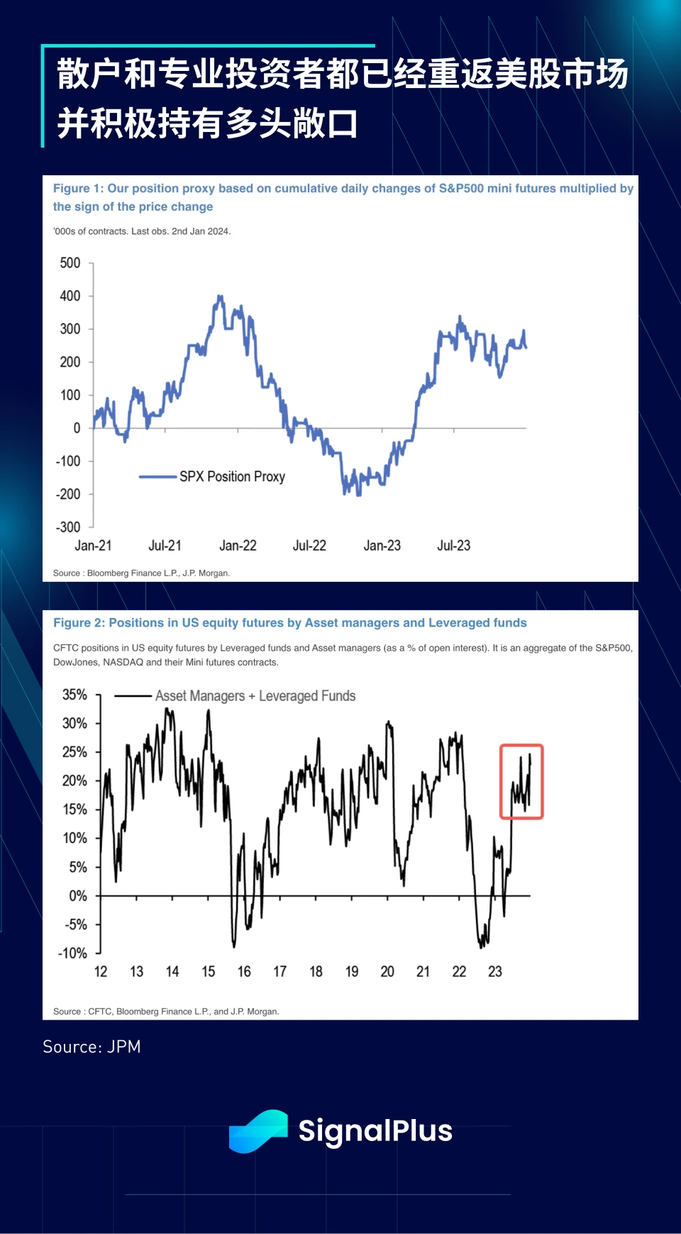 与 2023 年初的情形截然不同,投资者在 2024 年初就积极持有大宗商品以外几乎所有风险资产类别的多头头寸。