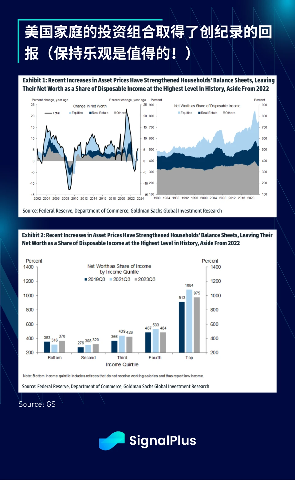 长时间以来,总有人批评美国消费者过度消费,认为这种情况不可能持续下去,然而到了 2023 年,美国家庭的净财富(已考虑债务)仍维持在接近历史高点的水平,延续了过去 40 年的上升趋势,几乎未受任何影响。