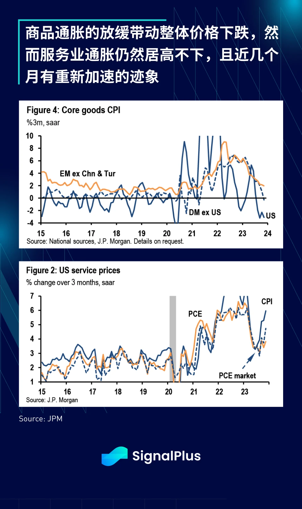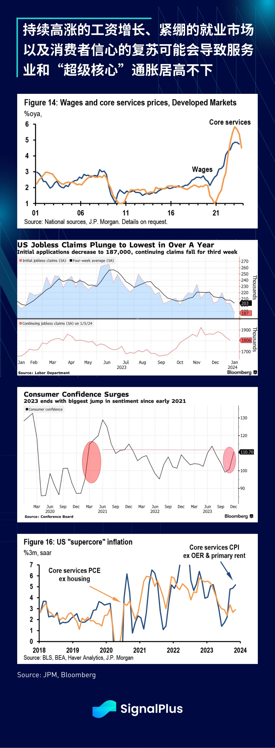 在服务业方面,由于工资增长持续高涨,美国就业市场长期紧绷,加上消费者信心复苏,这些因素可能会共同导致服务业和“超级核心”通胀持续远高于美联储的目标水平。