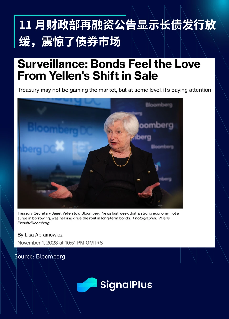 首先,Yellen 在 11 月的季度融资公告中宣布,财政部计划缩短第四季度债务发行的到期期限,令投资者感到意外,市场普遍认为这是财政部试图缓解长天期债券供应压力的举措,虽然从根本上来说,财政部趁收益率曲线严重倒挂时锁定较低的融资成本或许更为明智。