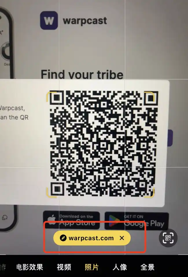 手机应用注册成功后,可以打开网页端 https://warpcast.com/,进行绑定操作。使用手机相册对准登陆二维码,点击黄色链接跳转登陆确认。