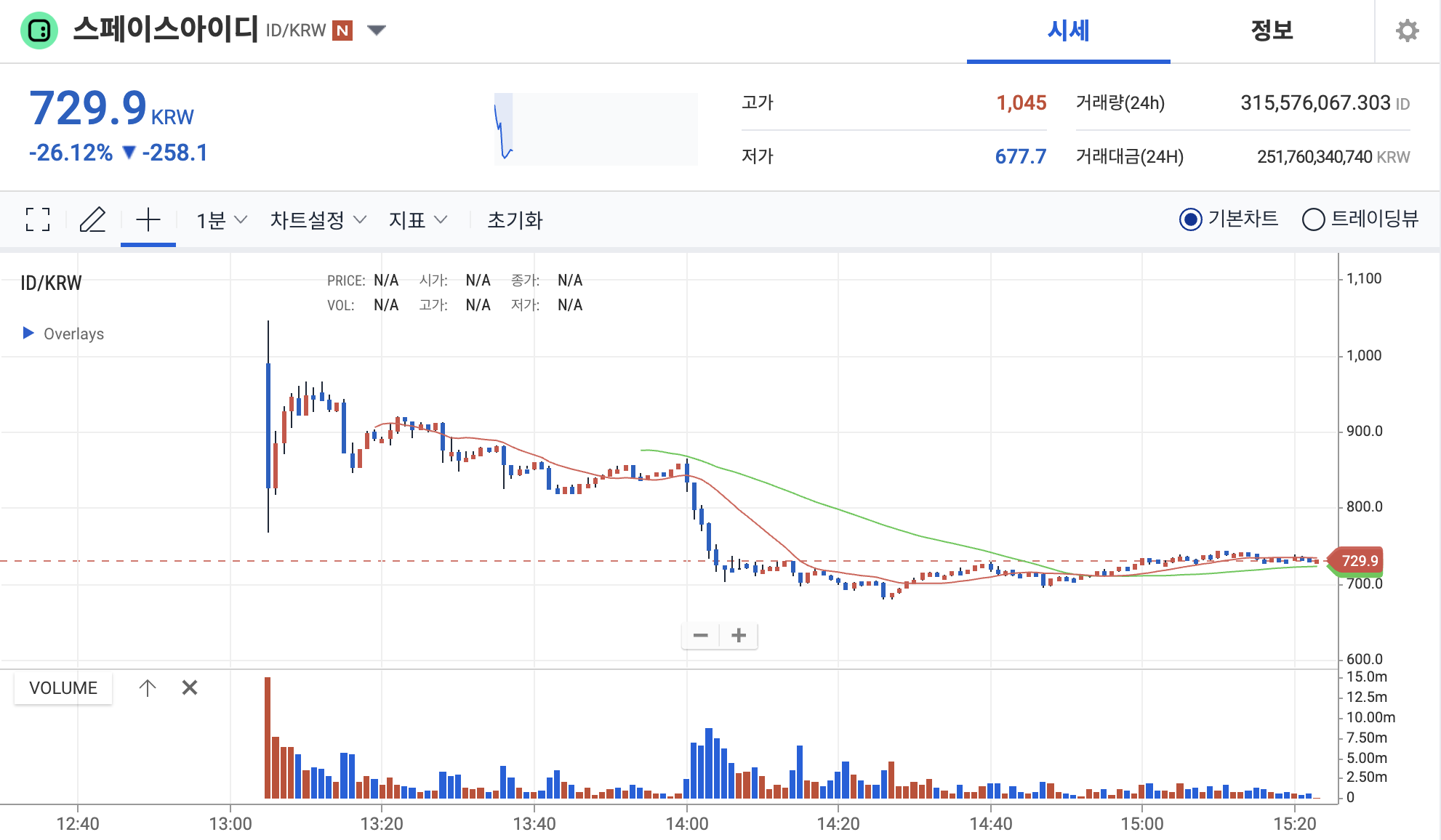 这次 ID 在 Upbit 上缐后,很快地价格突破 1,000 韩元,约莫 0.75 美元,在溢价 167%的幅度下也带动了交易热度,更让 ID 重返市场目光。