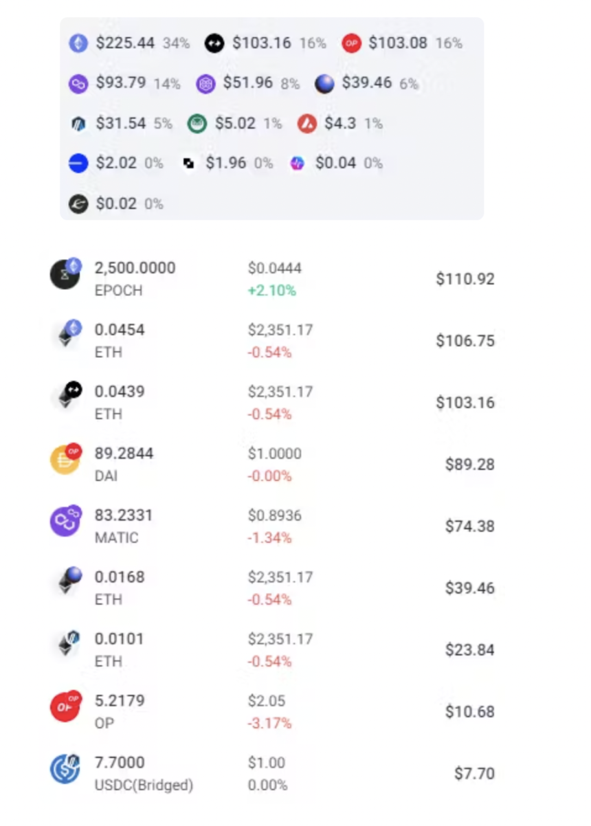 由于所有代币都可以跨生态系统互换,因此你的钱包无需显示资产所在的链或按链分类代币。相反,你的钱包可能看起来像这样: