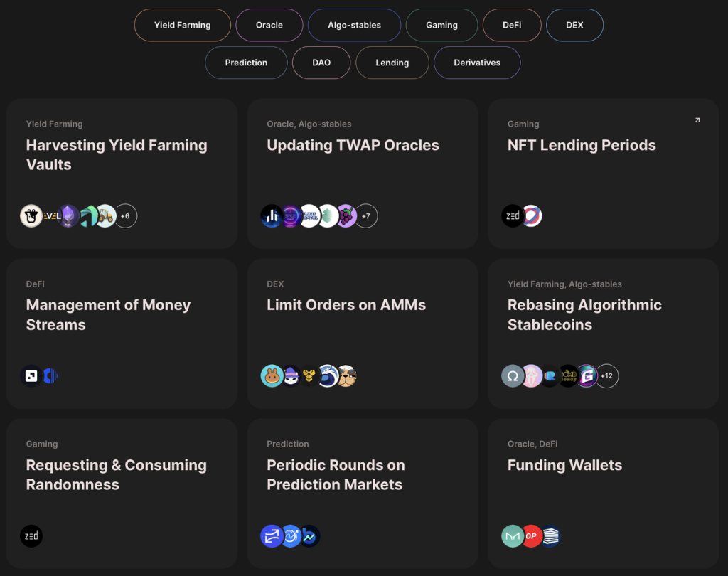 除了上述三个典型功能之外,Gelato 的 Automate 也有许多其他用例,同样得到了诸多 DeFi 项目的使用:比如帮助 Yield Framing 协议自动获取收益、更新预言机等等。