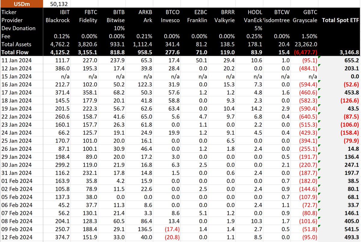 现货 ETF 净流入超 4.93 亿美元,其中: