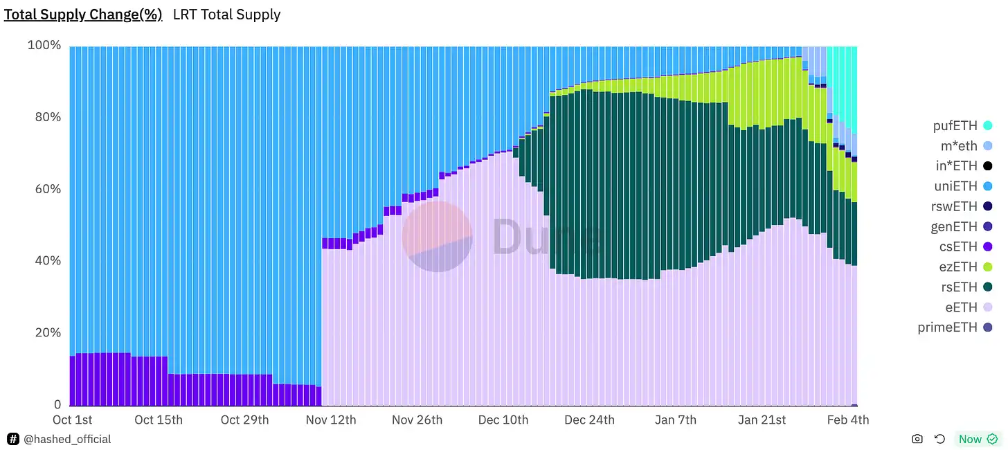 Lido 在流动性质押代币(LST)领域取得了领先地位,但流动性再质押代币(LRT)的竞争才刚刚拉𫔭帷幕!这预示著加密货币行业中最具增长潜力的领域将迎来一场充满挑𢧐的较量。