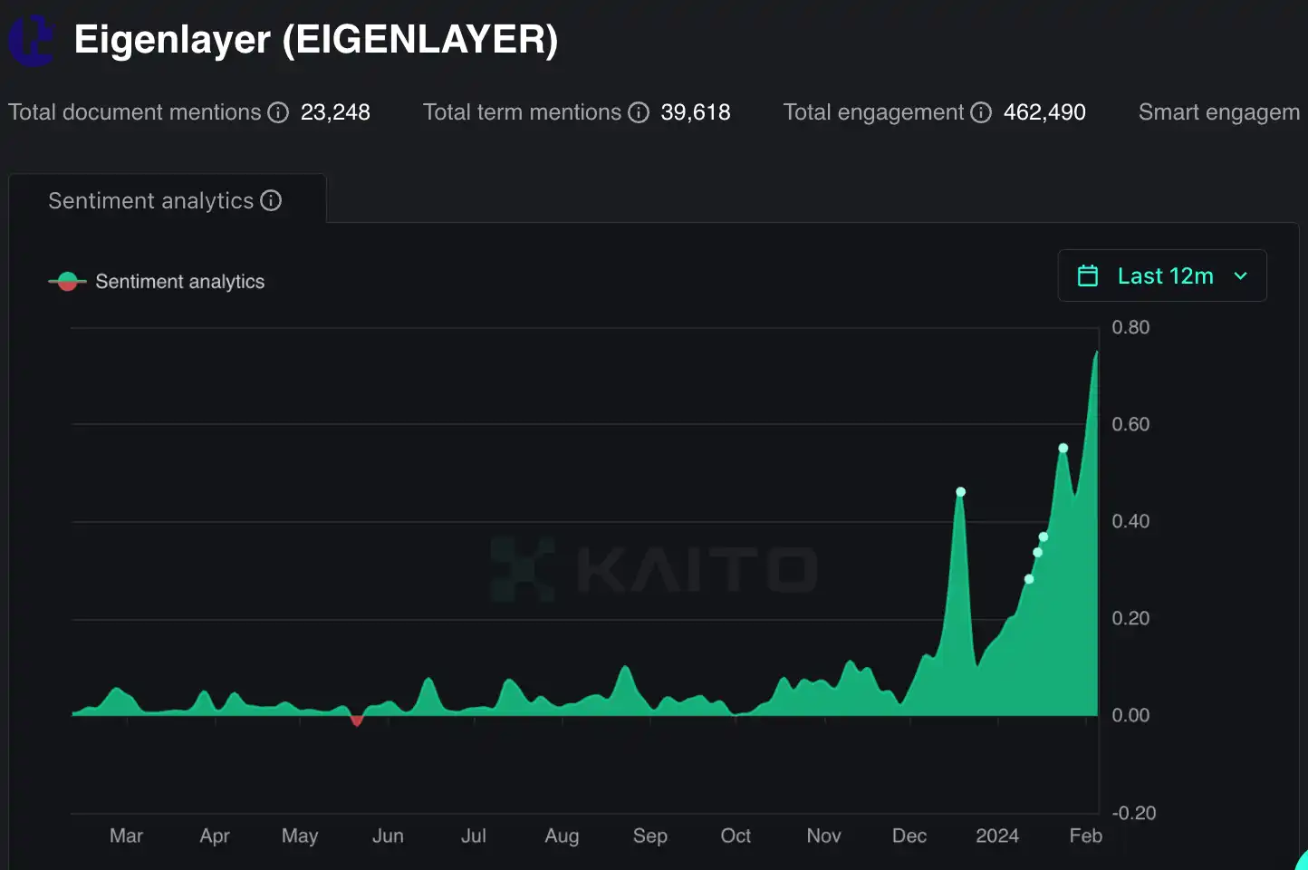 情绪分析使用 Kaito 平台上的人工智慧来分析加密 Twitter 推文,为每条推文分配一个情绪分数,以得出特定代币在给定时期内的成交量加权总体情绪分数