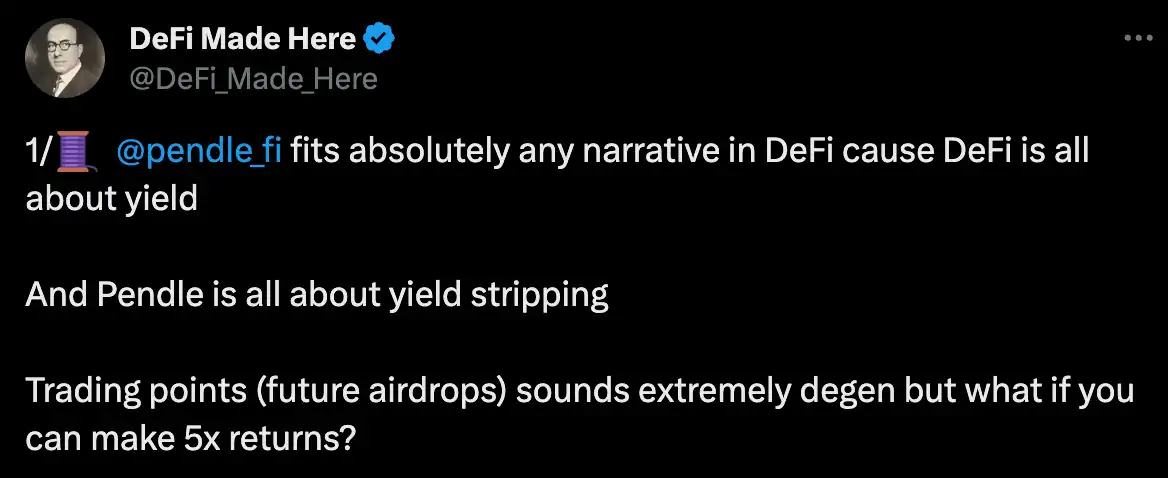 - 整合到 DeFi 1.0 平台:Pendle 是一个主要的平台。(我排除了像去中心化交易所(DEXes)这样的无许可部署。这些整合属于「流动性」部分。)