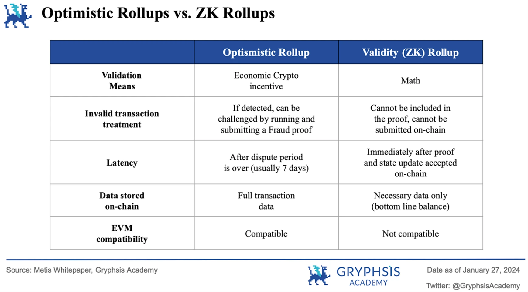 2023 年 3 月由 Metis 所介绍的 Hybrid Rollup 技术,融合了 Optimistic Rollup 框架和零知识证明,为 Metis 开发的重中之重。这种混合方案旨在结合 Optimistic Rollup 的扩展性优势和 ZK Rollup 固有的安全性及确证特性。
