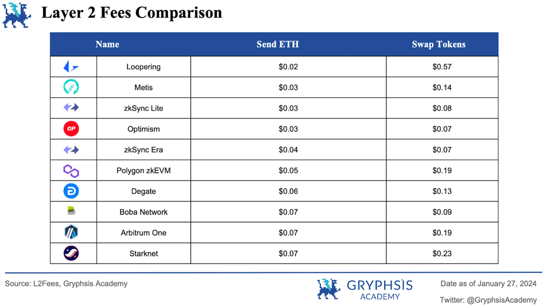 L2 Fees 的数据显示, Metis 已经是转账 $ETH 的成本效益第二高的选择,以及进行代币交换的第三低成本选项。实施坎昆升级后,可能会进一步提升 Metis 在费用方面的优势,有望带动其网络活动的增长。