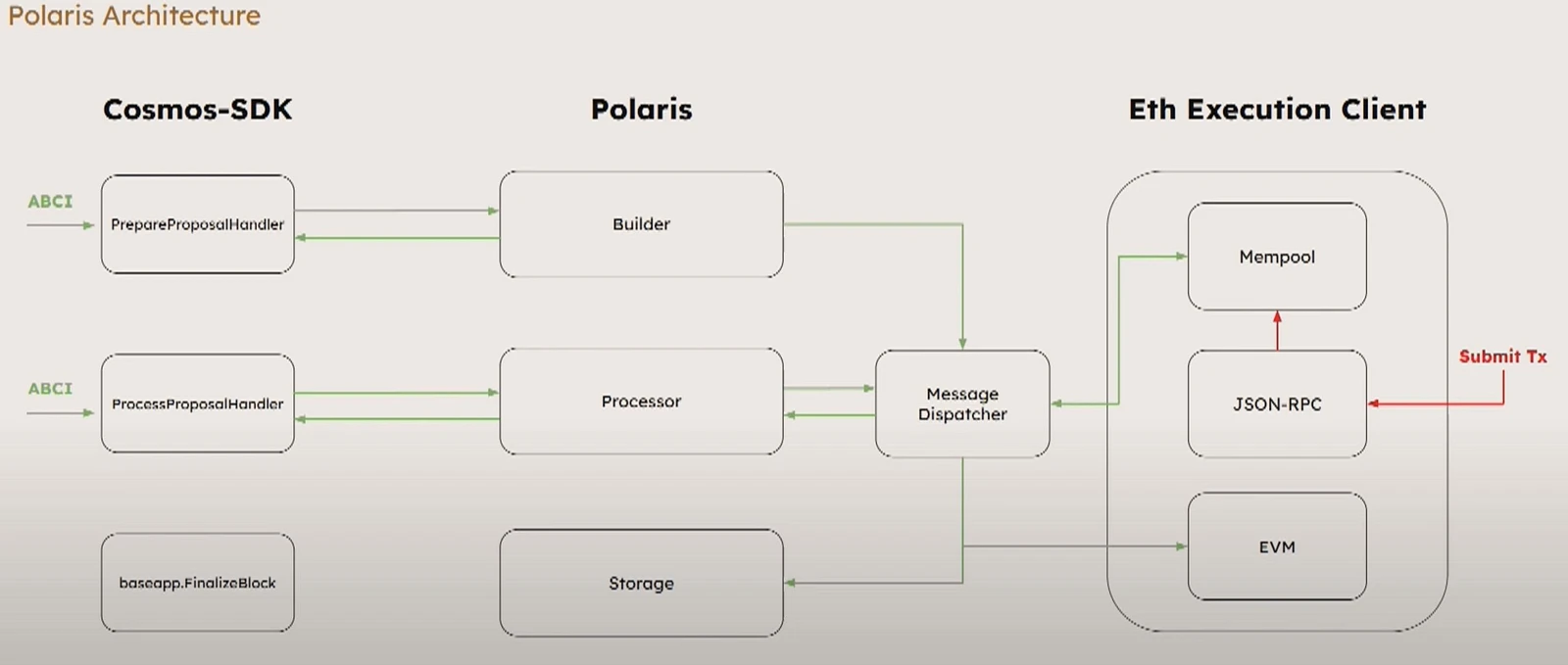 Berachain 基于 Polaris EVM 构建,Polaris 是其用于构建在 Cosmos SDK 之上的 EVM 基础操作系统。 Polaris 使用消息传递连接 EVM 和 Cosmos SDK,将块构建、处理和存储与执行分开。Polaris EVM 还为开发人员提供了状态预编译和自定义模块的创建,开发人员可以使用它来创建更高效、更强大的智能合约。